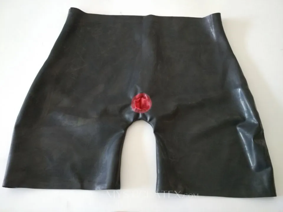 • Rubber Fetish Latex Underwear Attached Anal Sheath Front Zipper Sexy Shorts Customize for Men