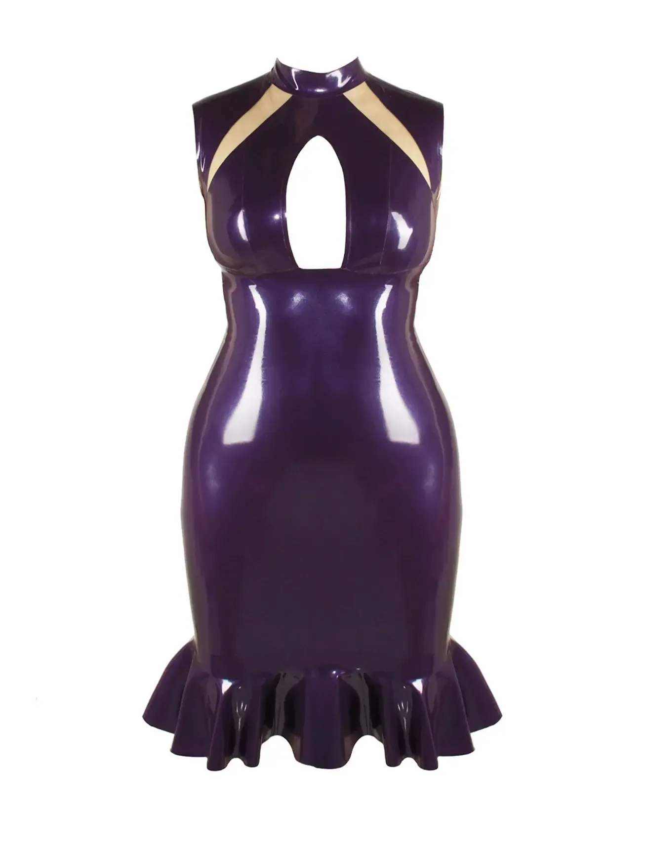Women Bust Open Back Hollow Ruffles Hem Latex DressWomen Bust Open Back Hollow Ruffles Hem Latex Dress